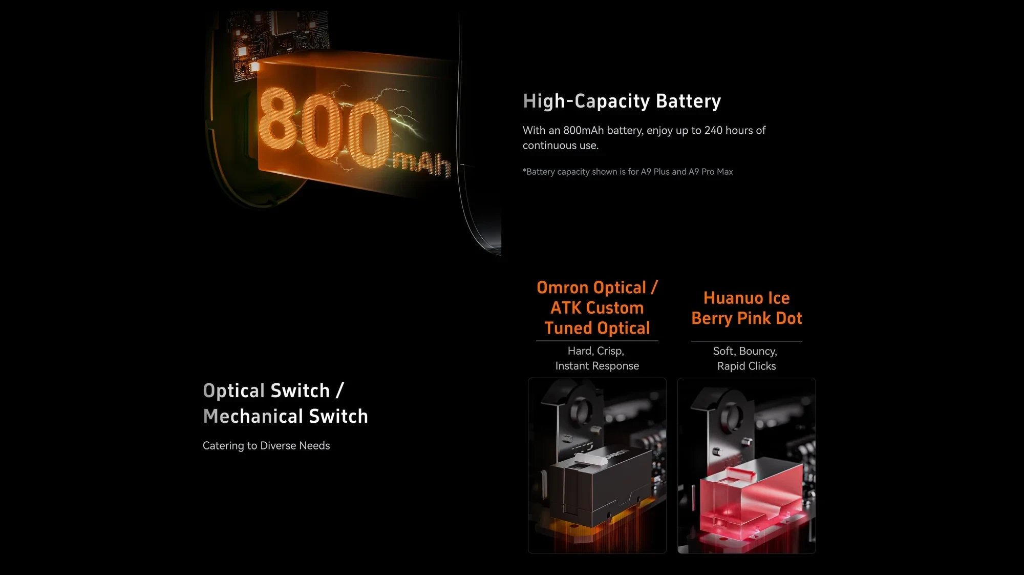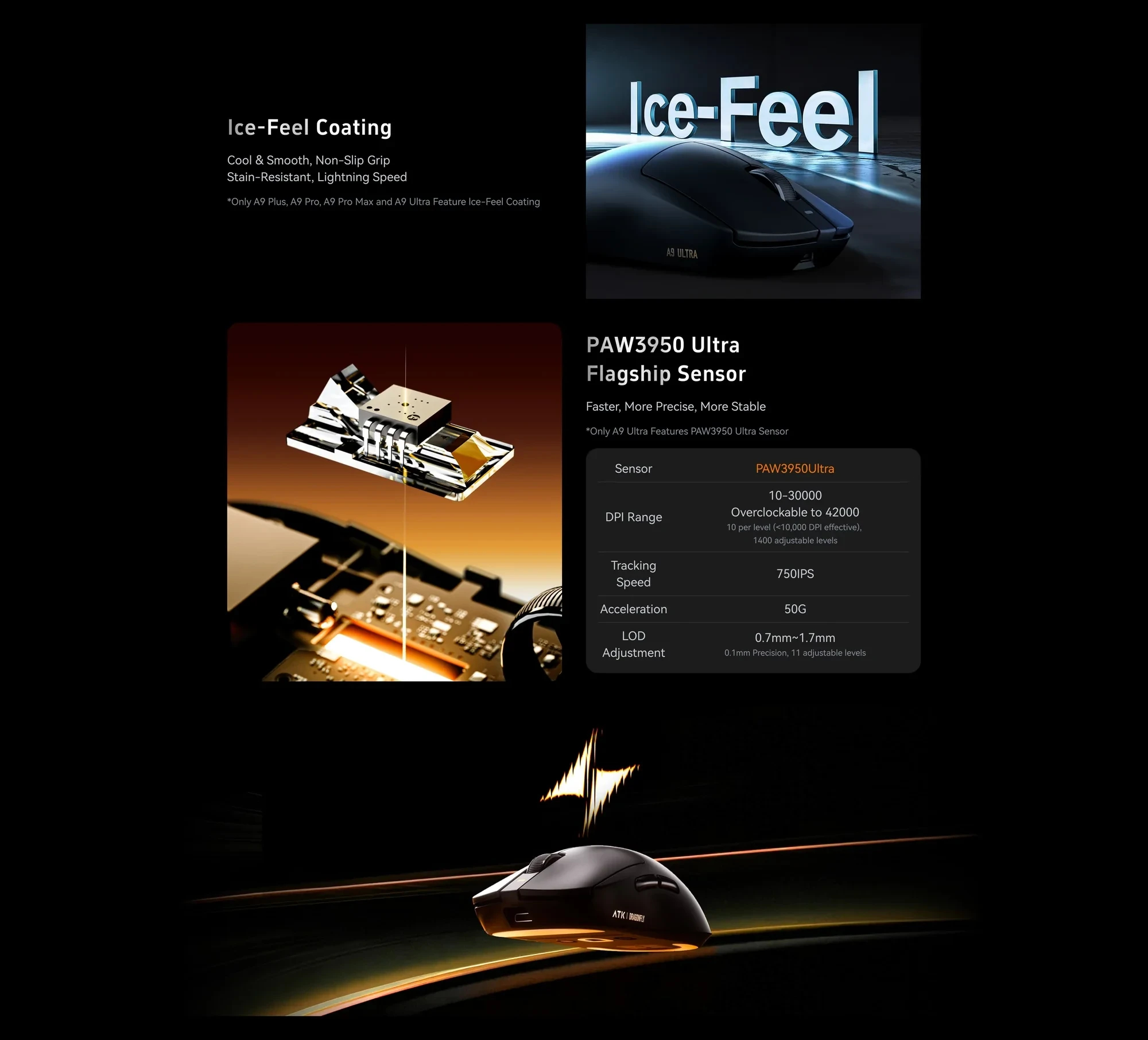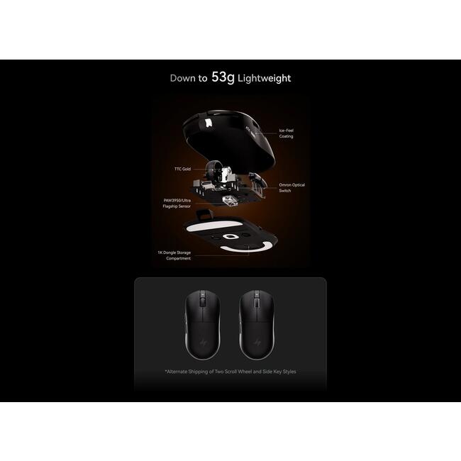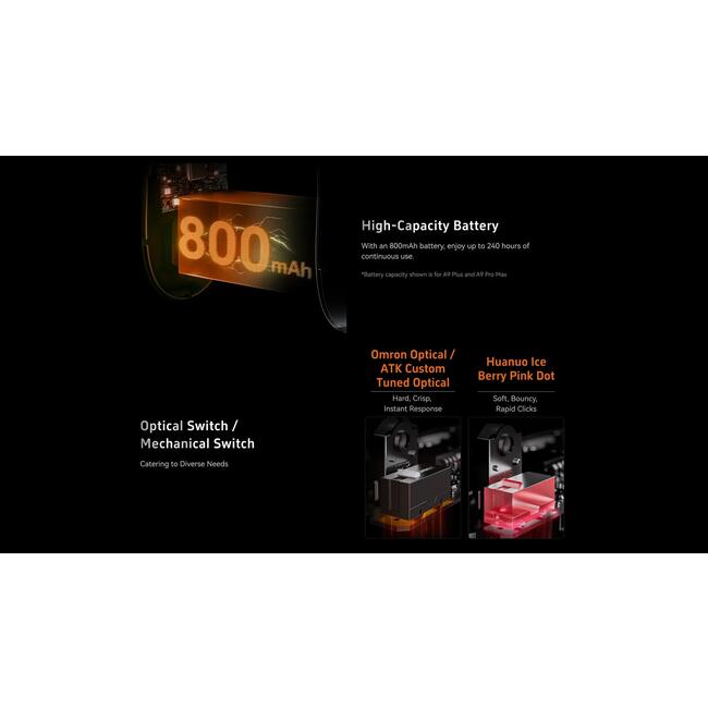 | ДОПЪЛНИТЕЛНИ | Ice-feel / anti-sweat coating for grip and comfort Battery Capacity: ~800 mAh built-in rechargeable battery Battery Life: Up to ~240 hours on NearLink wireless mode Quick Charging: Fast Type-C charge (30 min charge yields several hours use) Max Tracking: high IPS and acceleration typical for PAW3395 class sensors |