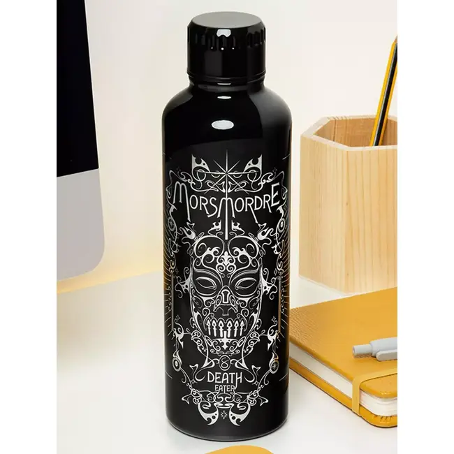 Потопете се в магическия свят с бутилката Harry Potter Death Eater Metal Water Bottle от Paladone! Със стилен дизайн, вдъхновен от маската на Белатрикс Лестранж и Death Eater /Смъртожадните/, тази бутилка е перфектна за фенове на Тъмните изкуства. Изработена от висококачествена неръждаема стомана, тя поддържа напитките топли или студени за по-дълго време – идеална за училище, работа или пътуване.
