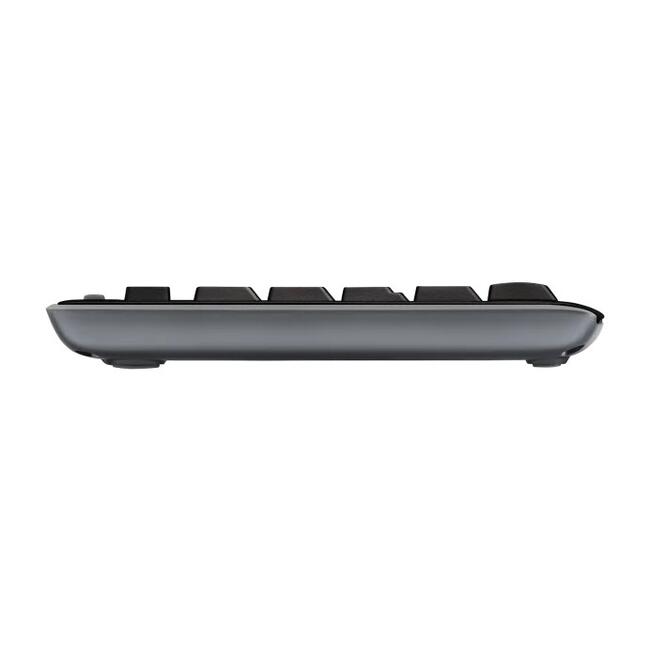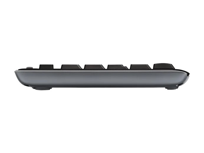 Клавиатурата се предлага с дизайн, устойчив на разливане, издръжливи клавиши и здрави накланящи се крака с регулируема височина. 36-месечен живот на батерията на клавиатурата и 12-месечен живот на мишката - заедно с превключватели за включване/изключване - означава, че можете да работите с месеци без да се налага да сменяте батериите.