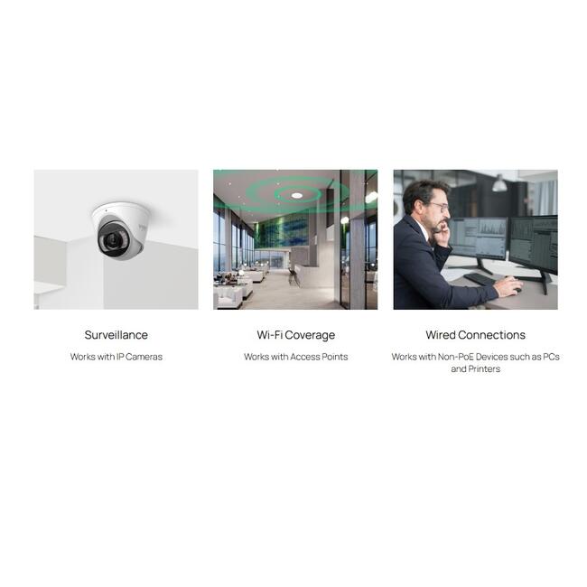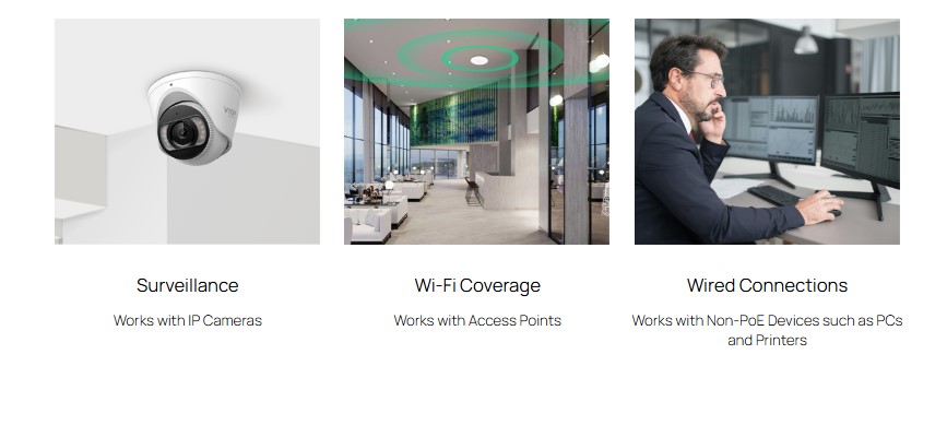 Кабелни връзки - Работи с устройства без PoE, като компютри и принтери