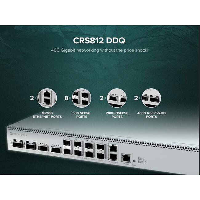 CRS812 DDQ е следващата стъпка в развитието на вашата мрежа – мощно, ефективно и достъпно решение за интеграция на 50G, 200G и 400G във вашия rack.