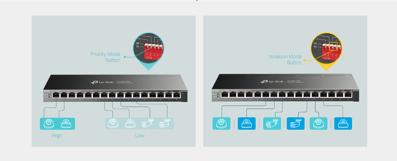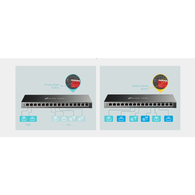 Когато общата консумация на енергия надвиши 120 W, интелигентното управление на мощността ще намали мощността на порта с по-нисък приоритет. Това гарантира захранването на порта с висок приоритет и предпазва устройството от претоварване на мощността. Той също така автоматично открива и осигурява необходимата мощност за вашите PoE устройства, като същевременно предпазва вашето PoE и не-PoE оборудване от повреда.