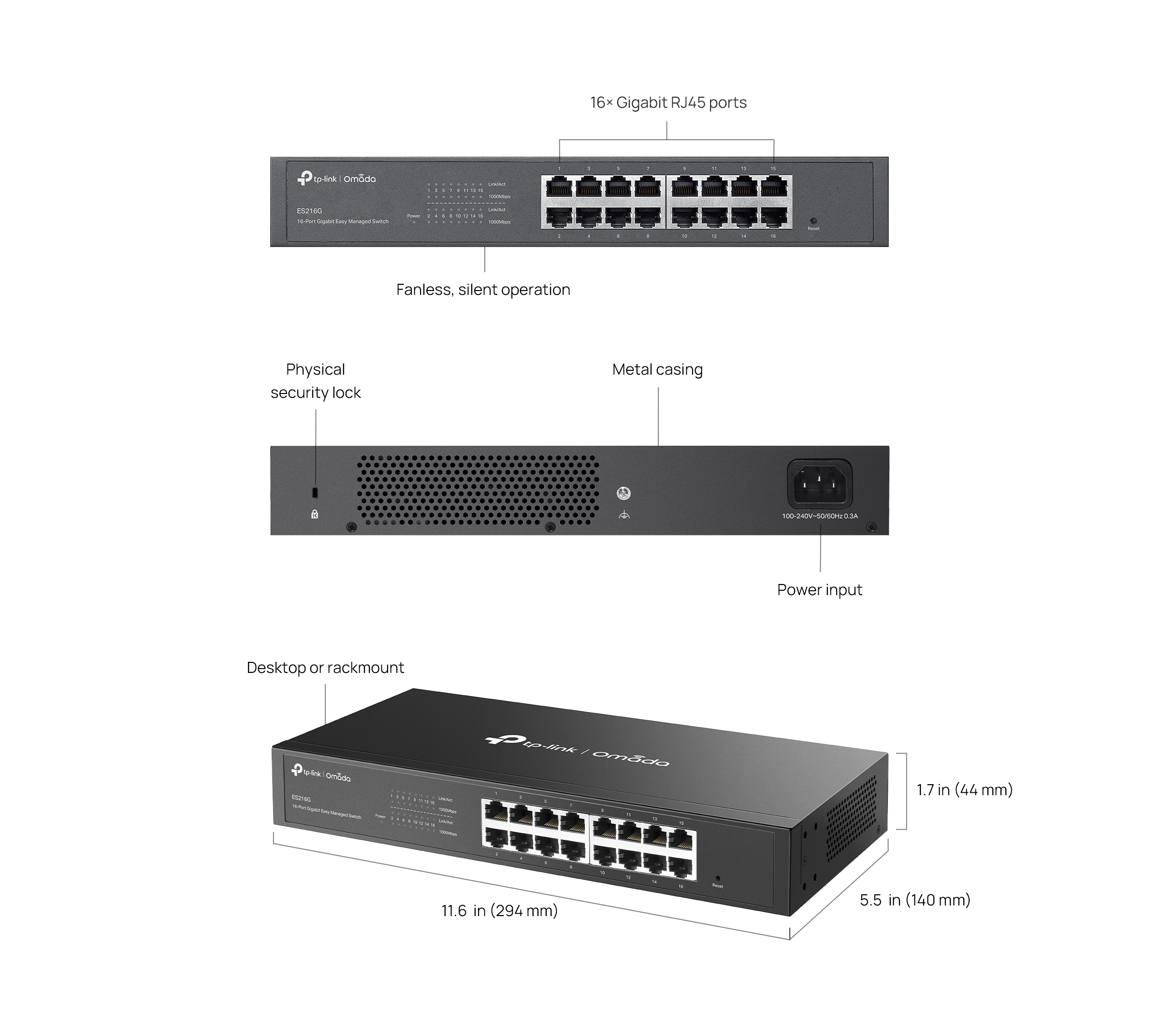 | Интерфейс | • 16× 10/100/1000 Mbps RJ45 Ports |