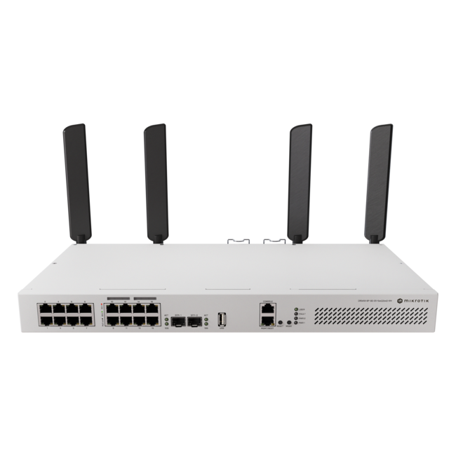 CRS418-8P-8G-2S+5axQ2axQ-RM е всичко-в-едно решение – комутатор и маршрутизатор с 4×4 MIMO двулентов Wi-Fi 6 за бърза и надеждна връзка навсякъде. Перфектно решение за опростяване на малки сървърни помещения или средни офиси – вече не е нужно отделна точка за достъп.