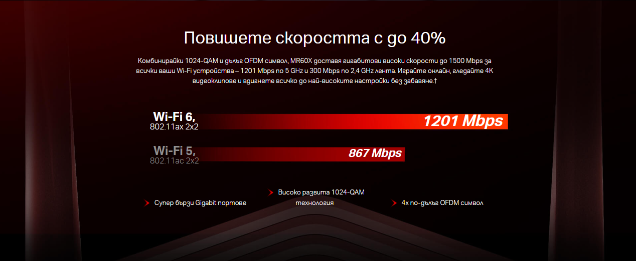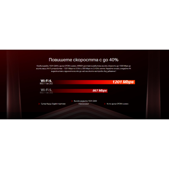 | Wi-Fi скорост | 5GHz: Up to 1201Mbps |