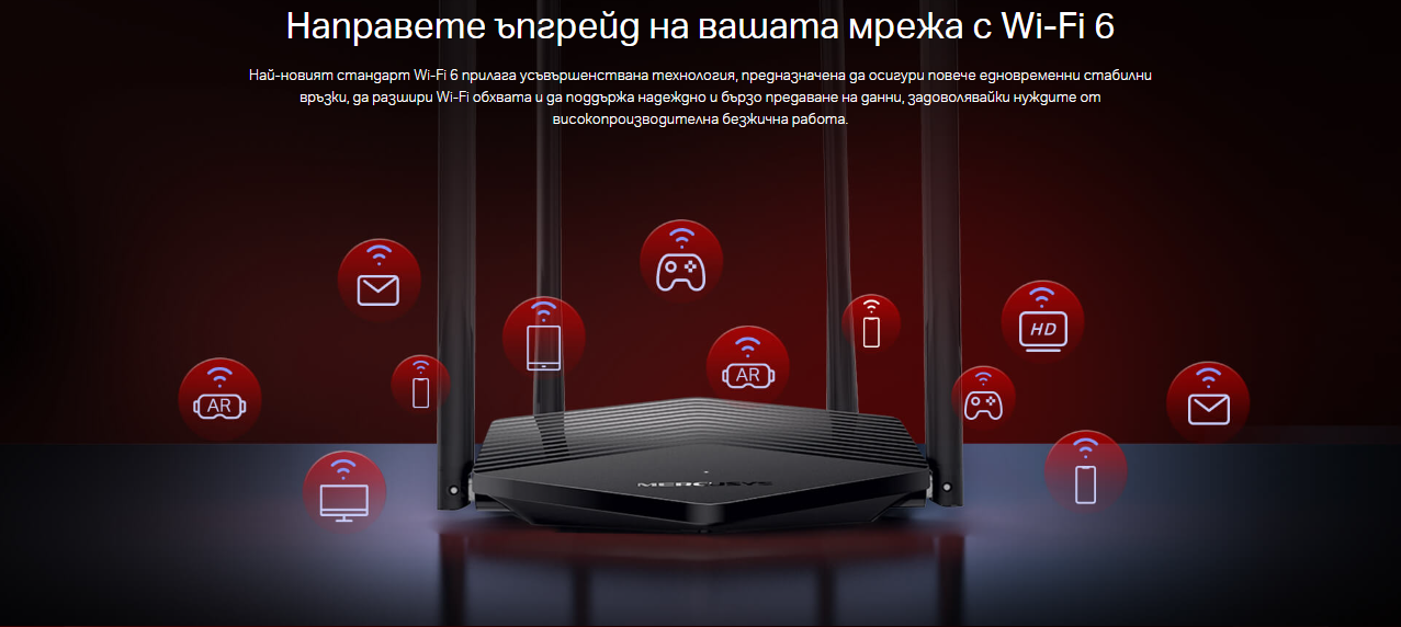 2-лентов WiFi 6 рутер Mercusys MR60X AX1500