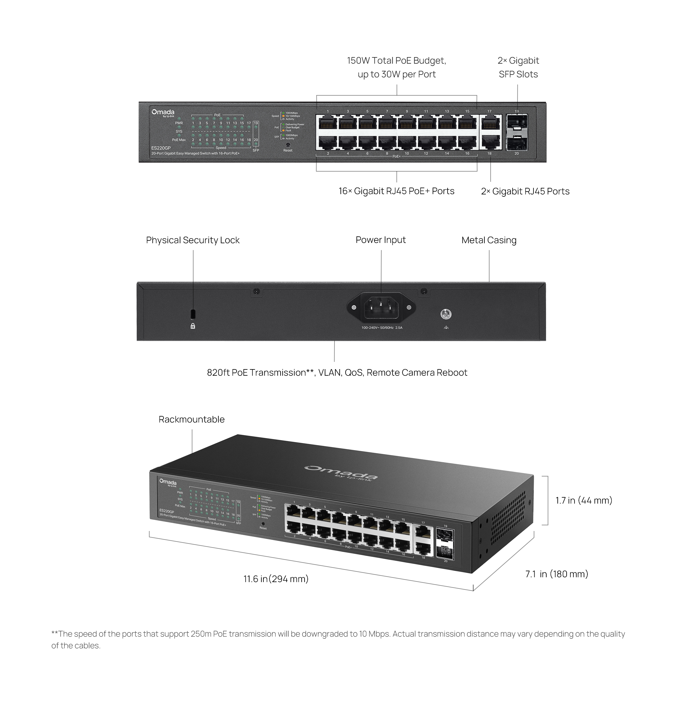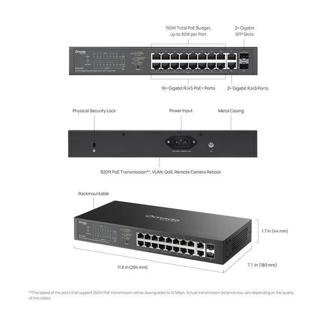 | Интерфейс | 18× 10/100/1000 Mbps PoE+ RJ45 Ports (16× 802.3af/at-compliant PoE+) |