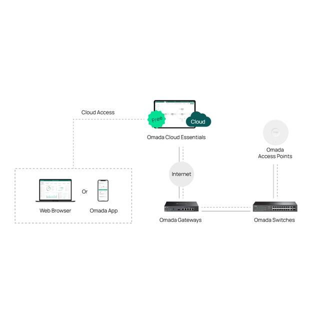 Omada Central Essentials е безплатна и лесна за използване версия на Omada Central. Тя осигурява облачно базирано централизирано управление и мониторинг за мрежовата система Omada, обхващаща точки за достъп, комутатори и шлюзове, идеална за мрежи за видеонаблюдение и малки предприятия.