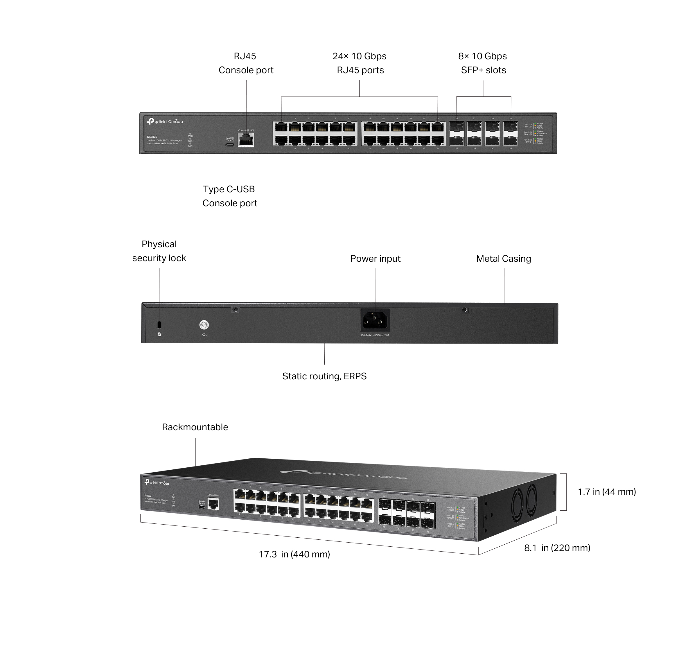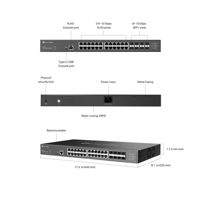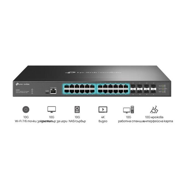 | Ethernet портове | 24× 100Mbps/1Gbps/2.5Gbps/5Gbps/10Gbps RJ45 Ports (Auto-Negotiation/Auto MDI/MDIX) |