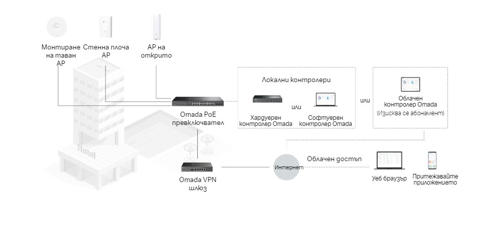 Управлявайте отдалечено вашите точки за достъп, комутатори и портове в множество сайтове от един интерфейс.
