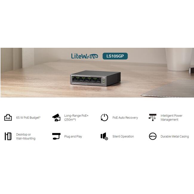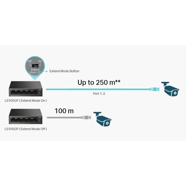 | Софтуерни функции | Extend Mode Button (Ports 1–4, Up to 250 m PoE power supply and data transmission) |