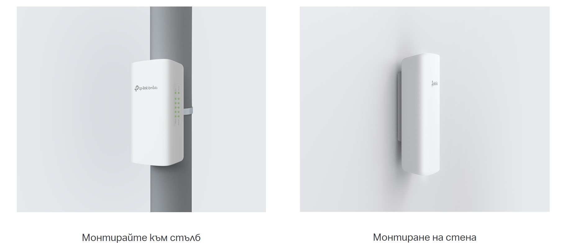 Лесно се монтира към стена или стълб с предоставените монтажни комплекти. Неговият компактен дизайн ви позволява да поставите превключвателя гъвкаво, като например във външна съединителна кутия.