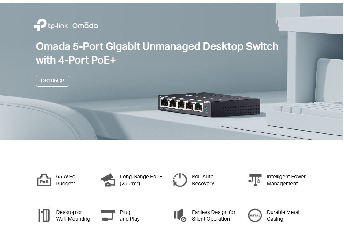 Omada 5-портов гигабитов неуправляем настолен превключвател