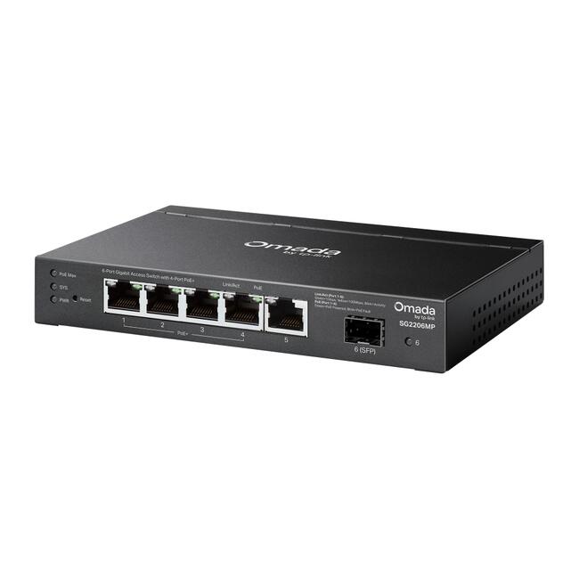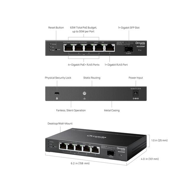 5× гигабитови порта (4× PoE+), 1× SFP слот