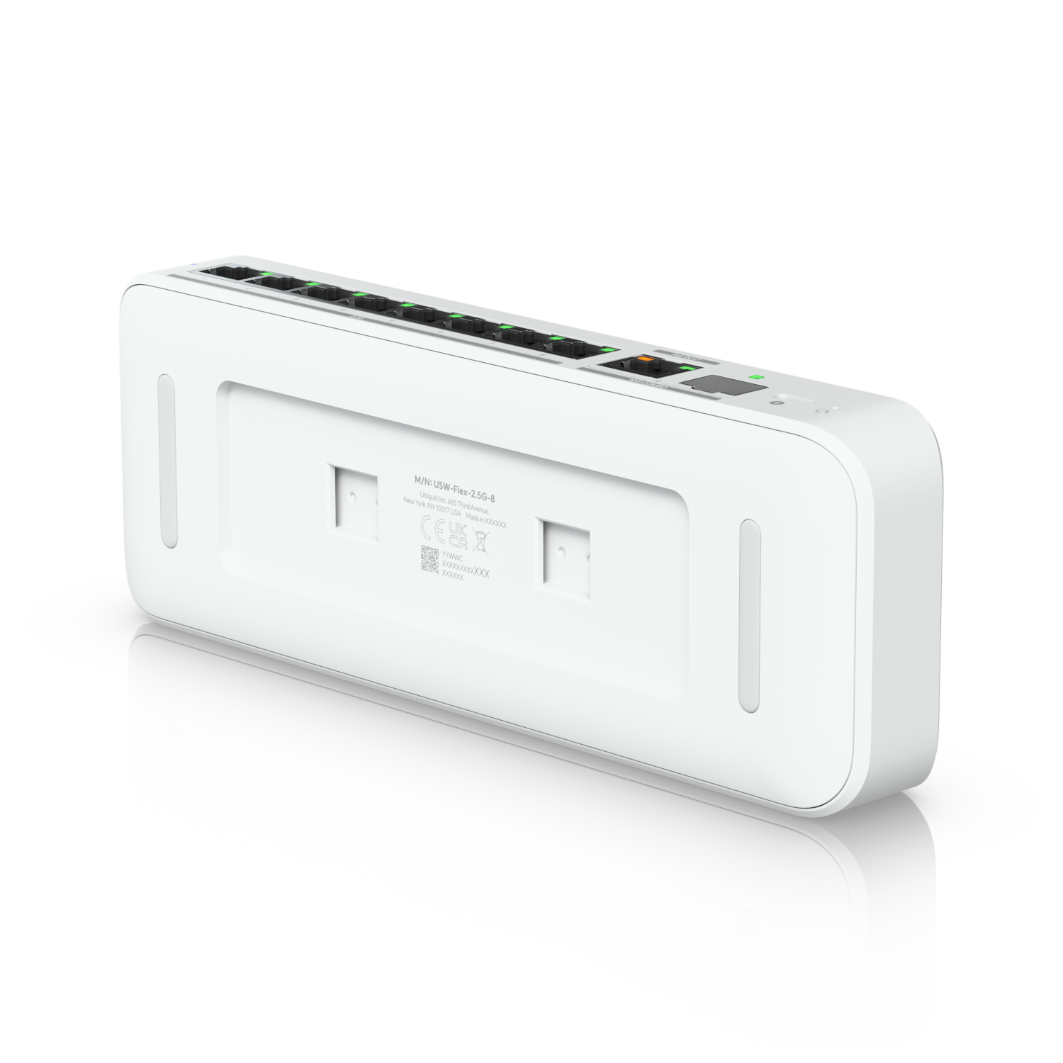 8-портов 2.5 GbE суич с комбиниран uplink порт 10 GbE RJ45/SFP+ и възможност за захранване чрез USB-C или PoE+ адаптер.