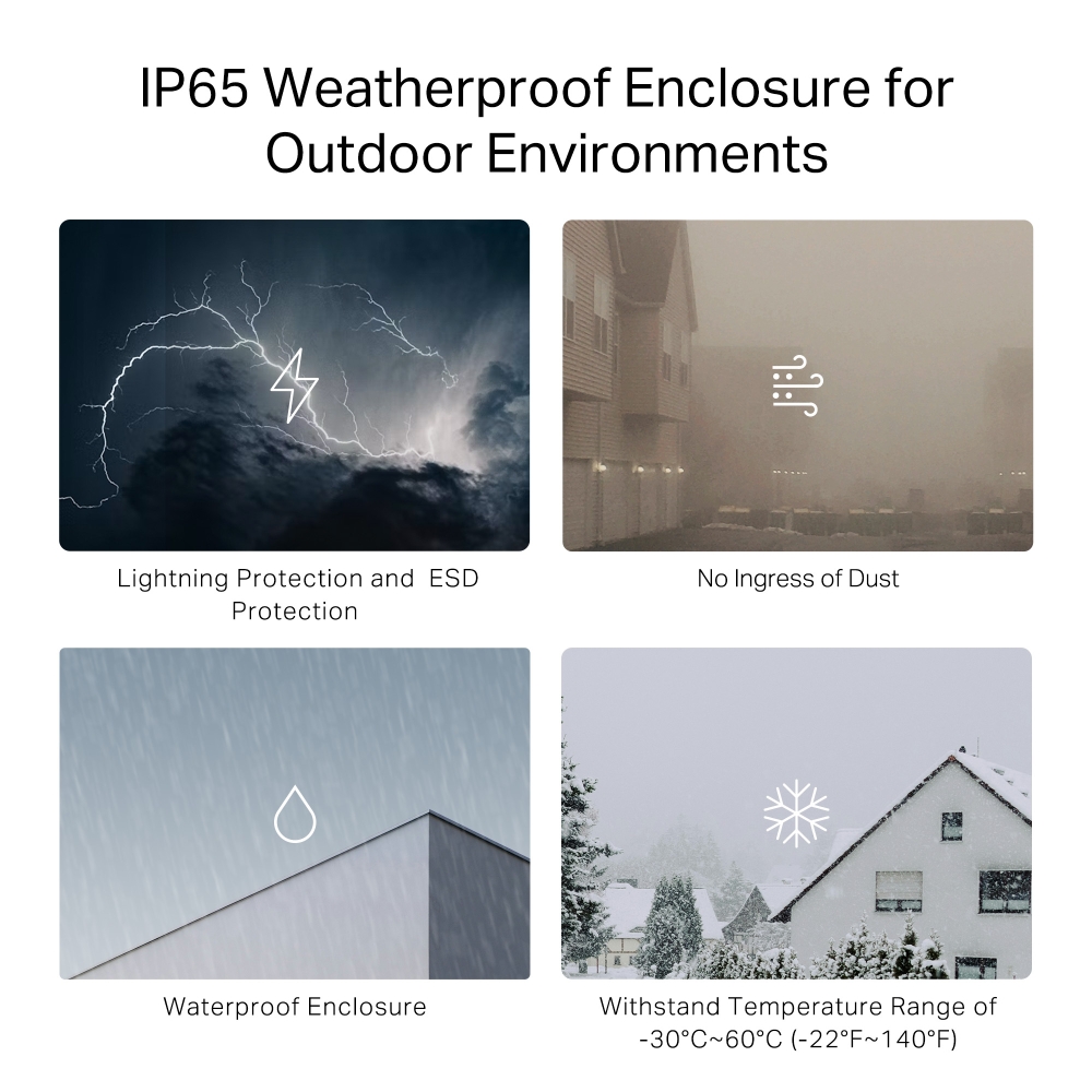 Deco BE25-Outdoor разполага с водоустойчив корпус и стабилна работна температура, което позволява силен Wi-Fi сигнал на открито. Гъвкавият монтаж и захранване го правят още по-лесен за употреба на открито.