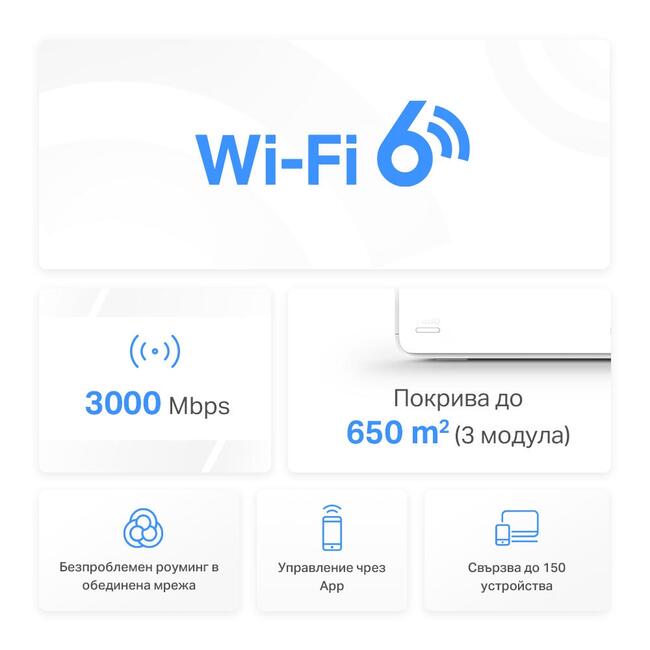С технологията Wi-Fi 6, Halo H80X предлага подобрена производителност по отношение на скорост, ефективност и капацитет в сравнение с предишното поколение Wi-Fi.3