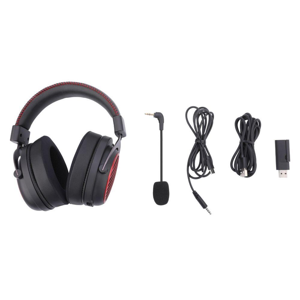 Геймърски слушалки Redragon Luna Pro – безжични (Bluetooth) и с кабел, черен цвят. Ергономичен дизайн с алуминиево шаси. Включен шумопотискащ микрофон (Ø6x2.7mm, чувствителност: -42±3dB, импеданс: 2.2KΩ). Вградени говорители с диаметър 53 mm (честотен обхват: 50Hz–20KHz, чувствителност: 111dB SPL). Виртуален 360° пространствен звук с 3 режима на работа: Stereo, Gaming и Spatial 360°.