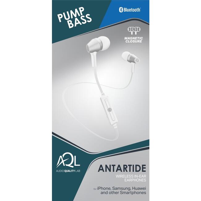 Antartide са Bluetooth слушалки, предназначени за хора, които искат да слушат дълбок и богат бас. Благодарение на бутоните може да се контролира силата на звука, плейлиста и всякакви повиквания. Тапичките са добре уплатнени, което гарантира, че фоновият шум ще е блокиран, за да може да се чува само музиката, която трябва. Допълнително, благодарение на магнитното им закопчаване могат да се носят удобно около врата, когато не се използват.