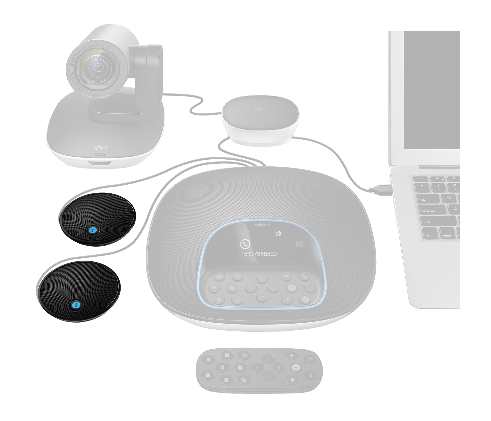Удължават покритието на Logitech GROUP от 6 m (20 ft) до 8.5 m (28 ft) диаметър — подходящо за по-големи конферентни маси/зали.