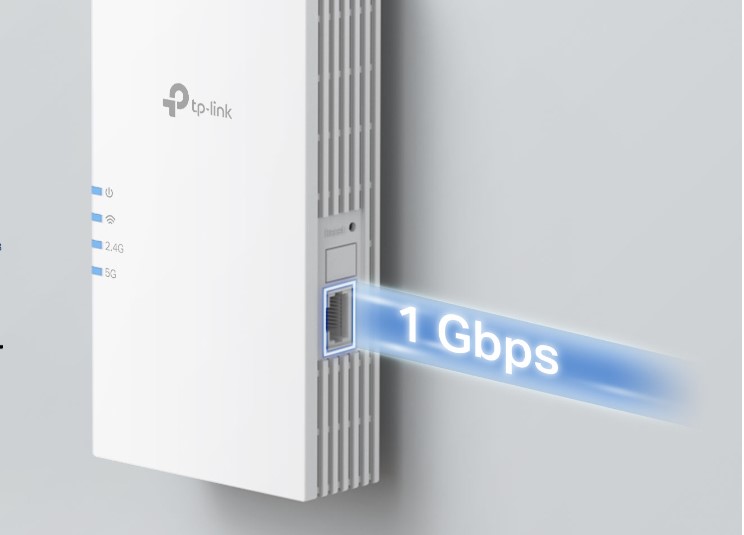 Свържете RE220BE с рутер, за да превърнете лесно тази 1G кабелна връзка във високоскоростен трилентов безжичен сигнал.