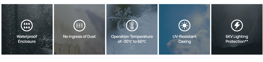 Оценен като IP55 по време на тестовете за защита срещу проникване, гъвкав корпус, устойчив на атмосферни влияния, предпазва шлюза от тежки външни условия.