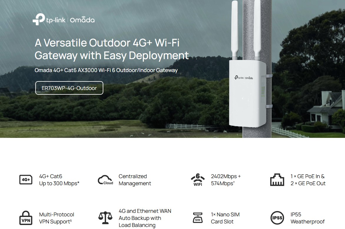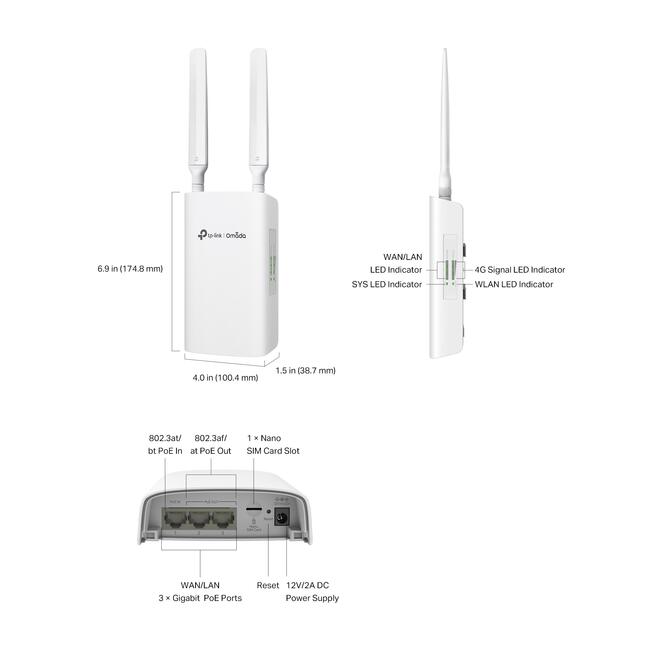 Комбинира 4G интернет достъп, Wi-Fi 6 безжична технология и 3 Gigabit PoE входни/изходни порта, всичко това в едно устройство, и може да се постигне автоматично архивиране и балансиране на натоварването между 4G и кабелна WAN. Наслаждавах се на мощен и многофункционален шлюз с лесно внедряване.
