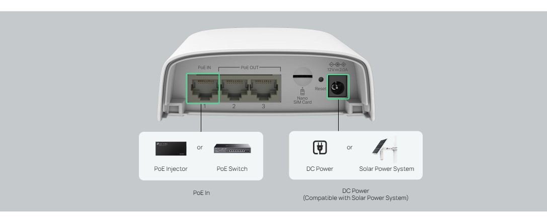 Захранван от PoE или DC (съвместим със слънчеви панели) за преодоляване на ограниченията за достъп до електрическата мрежа.