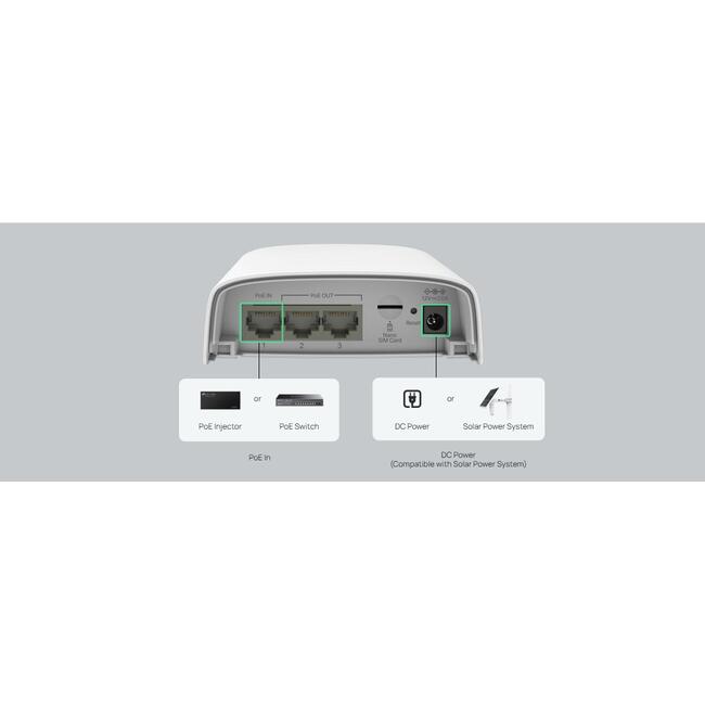 Поставете Nano SIM карта или се свържете към Ethernet WAN порт, за да получите гигабитов Wi-Fi. Насладете се на безпроблемно свързване с камери за наблюдение чрез кабел или безжично.