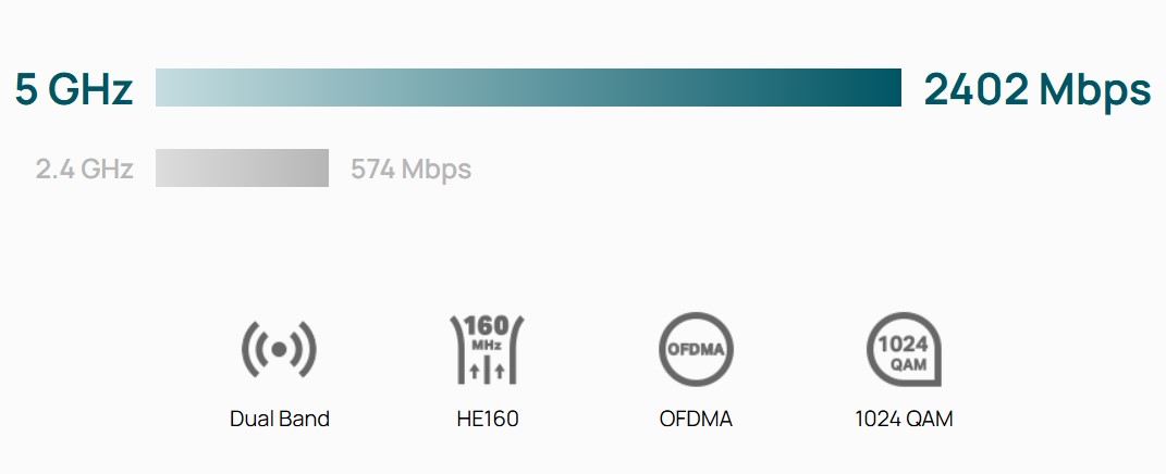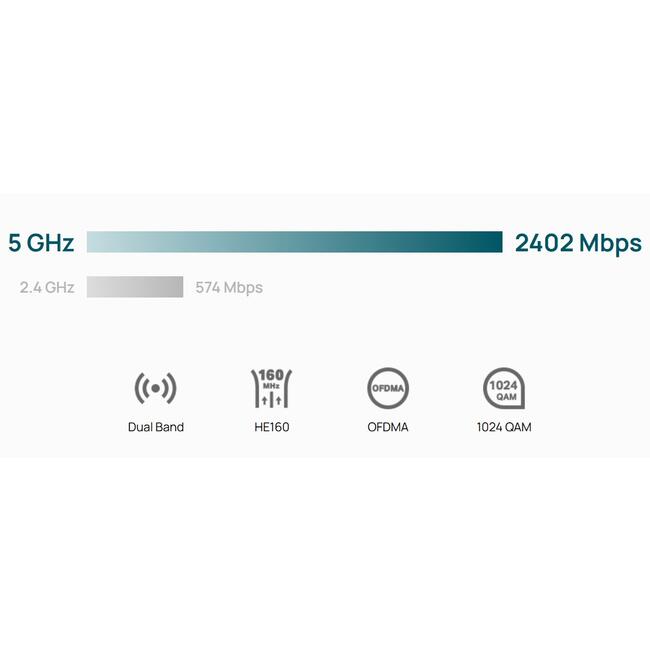 | Wi-Fi скорост | 5 GHz: 2402 Mbps (802.11ax, HE160) |