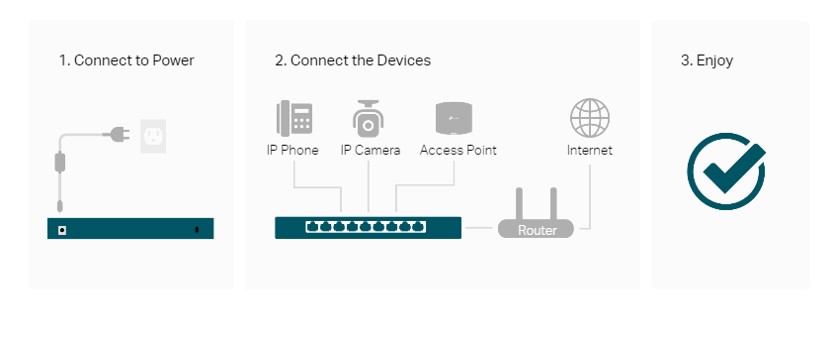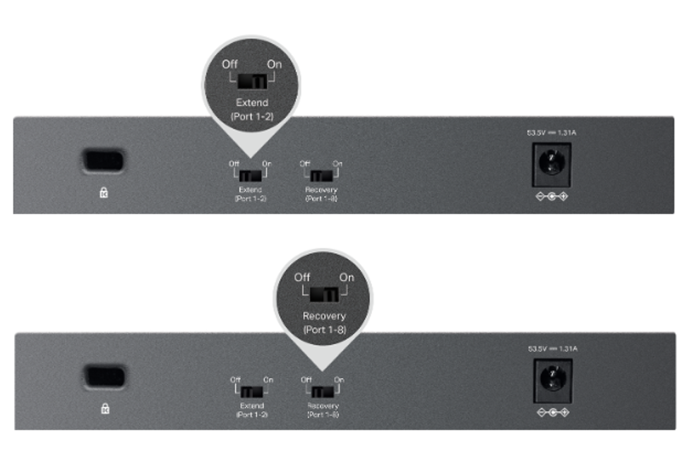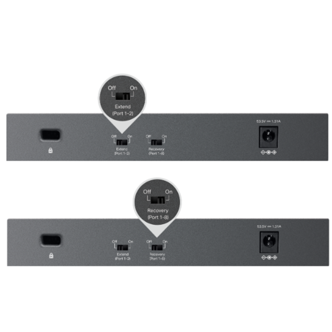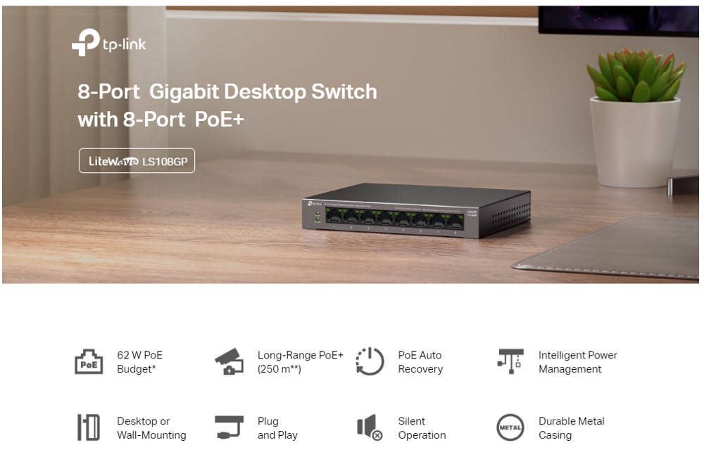 Съвместим със стандартите IEEE 802.3af/at PoE, комутаторът поддържа общ бюджет на PoE мощност от 62 W с 30 W максимум на PoE+ порт. Когато общата консумация на енергия надвиши 62 W, интелигентното управление на захранването ще намали захранването на портовете с по-нисък приоритет, за да защити устройствата от повреда.