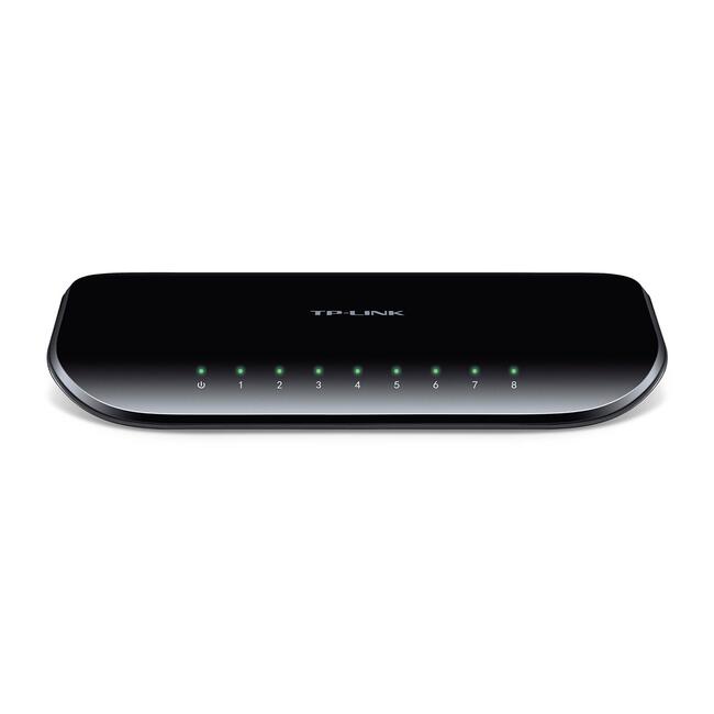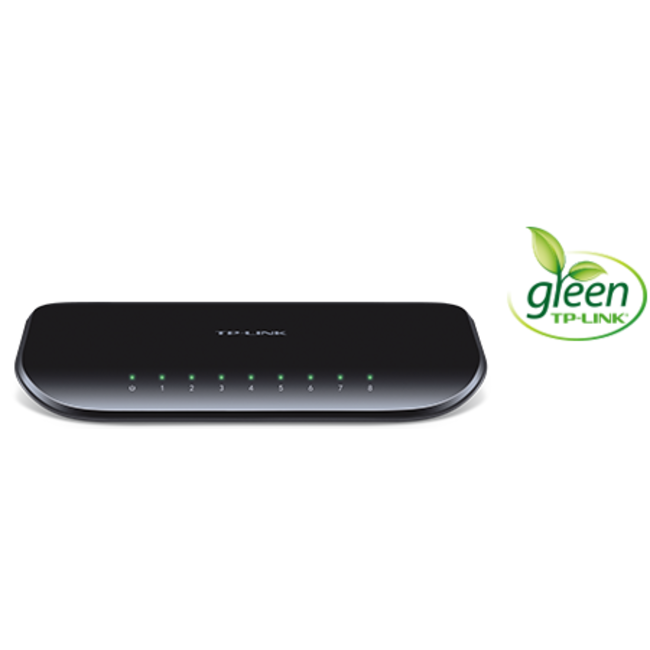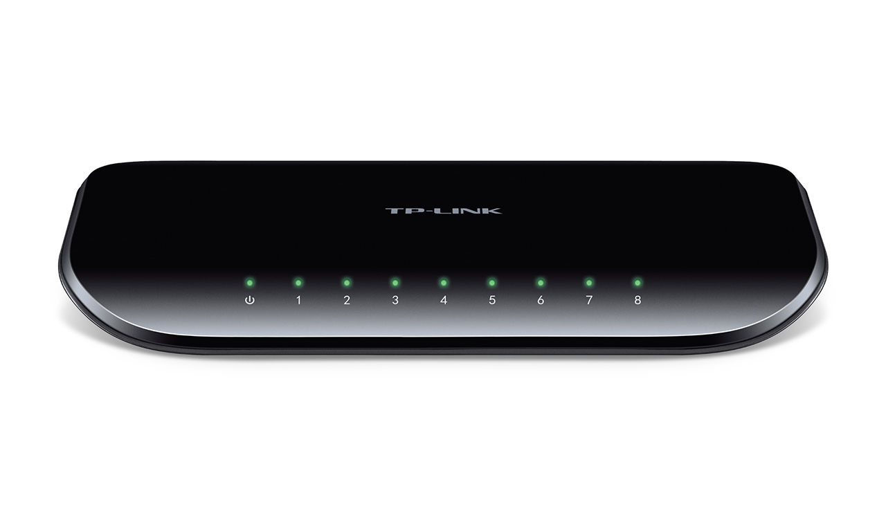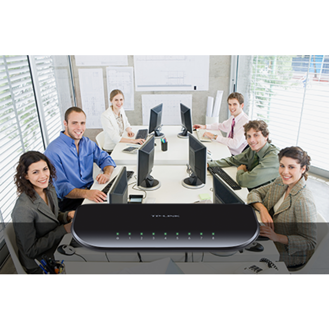 TL-SG1008D е 8 портов гигабитов комутатор от TP-LINK. Суичът поддържа auto MDI/MDIX и не изисква никакви конфигурации.