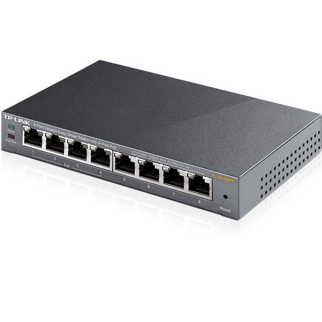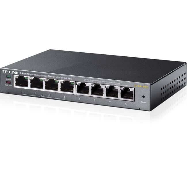 TL-SG108PE е 8-портов Gigabit Easy суич с 4 PoE порта, представляващ мощен ъпгрейд от неупрявляем комутатор.