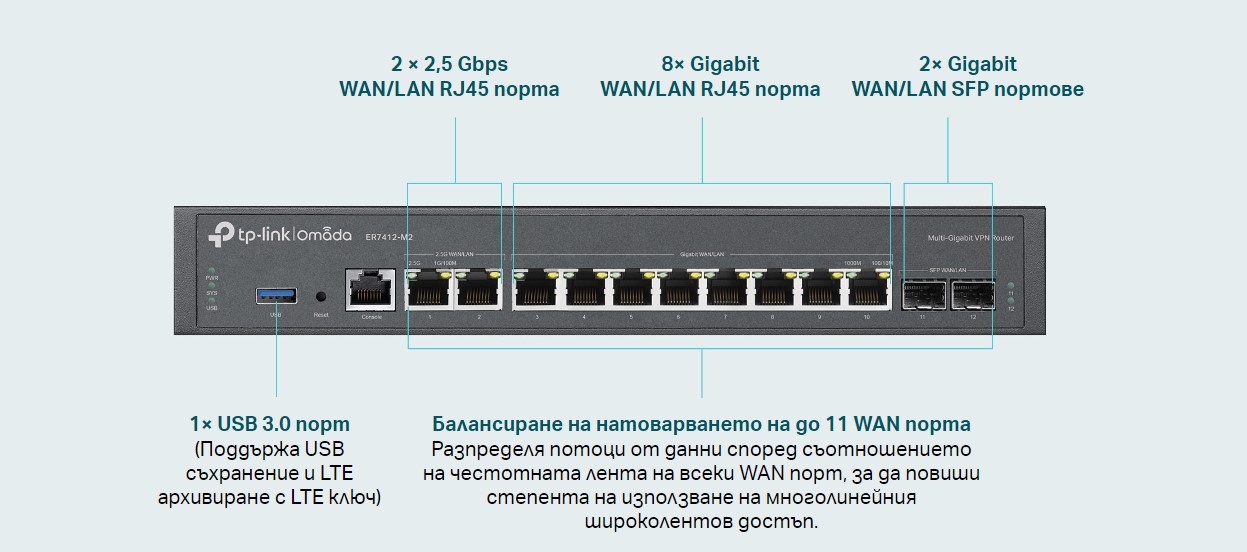 До 11 WAN порта и един USB WAN за мобилна широколентова връзка