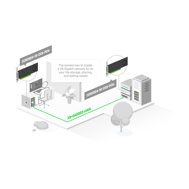 Продуктът съчетава прост 2х25 G PCIe Ethernet адаптер с възможностите на рутер.