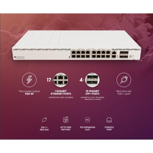 Общ Преглед: CRS320-8P-8B-4S+RM е проектиран да опрости управлението на кабелите, предлагайки надеждно решение за среди като хотели, конферентни зали, офиси и високи сгради. Този суич е оборудван да се справя с високо натоварени устройства с лекота.