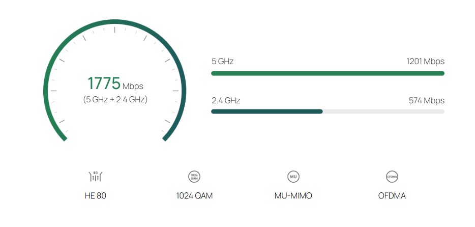 1775 Mbps (5 GHz + 2.4 GHz)
