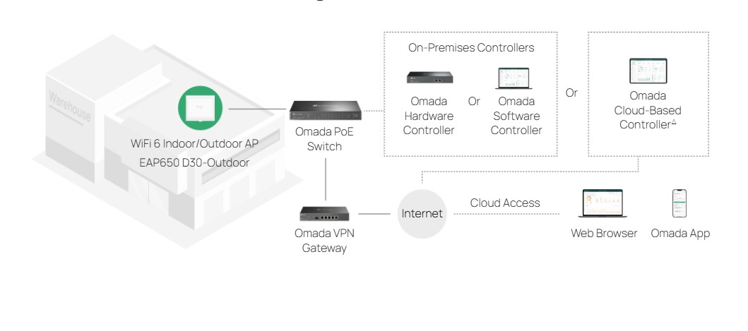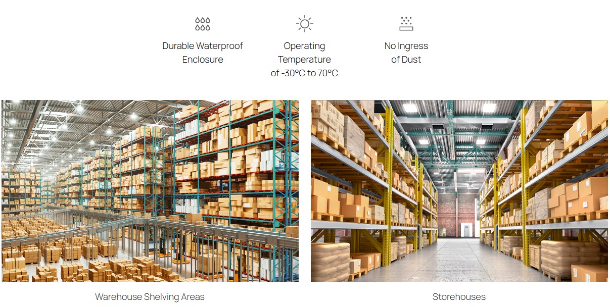 EAP650 D30-Outdoor разполага с издръжлив, напълно запечатан IP68 водоустойчив корпус, което го прави прахоустойчив и способен да издържа на потапяне във вода. Идеален за складови среди.