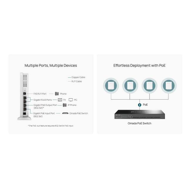 | Портове | 4× 1Gbps Ethernet Ports + 1× FXS Port |