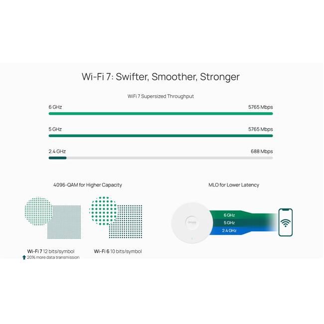 С 10 Gigabit Ethernet порт, EAP787 осигурява забележителна многогигабитова производителност за по-висока честотна лента и по-бърз WiFi. Съвместимостта с 802.3bt PoE е идеална за гъвкаво внедряване.