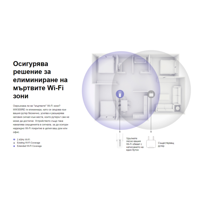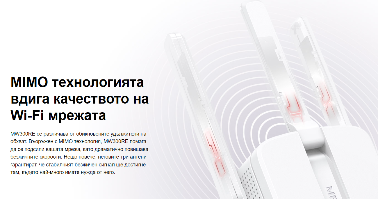 Удължител на обхват Mercusys MW300RE 300 Mbps Wi-Fi