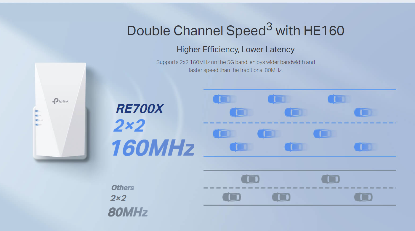 Поддържа 2x2 160MHz в 5G обхвата, радва се на по-широка честотна лента и по-висока скорост от традиционните.