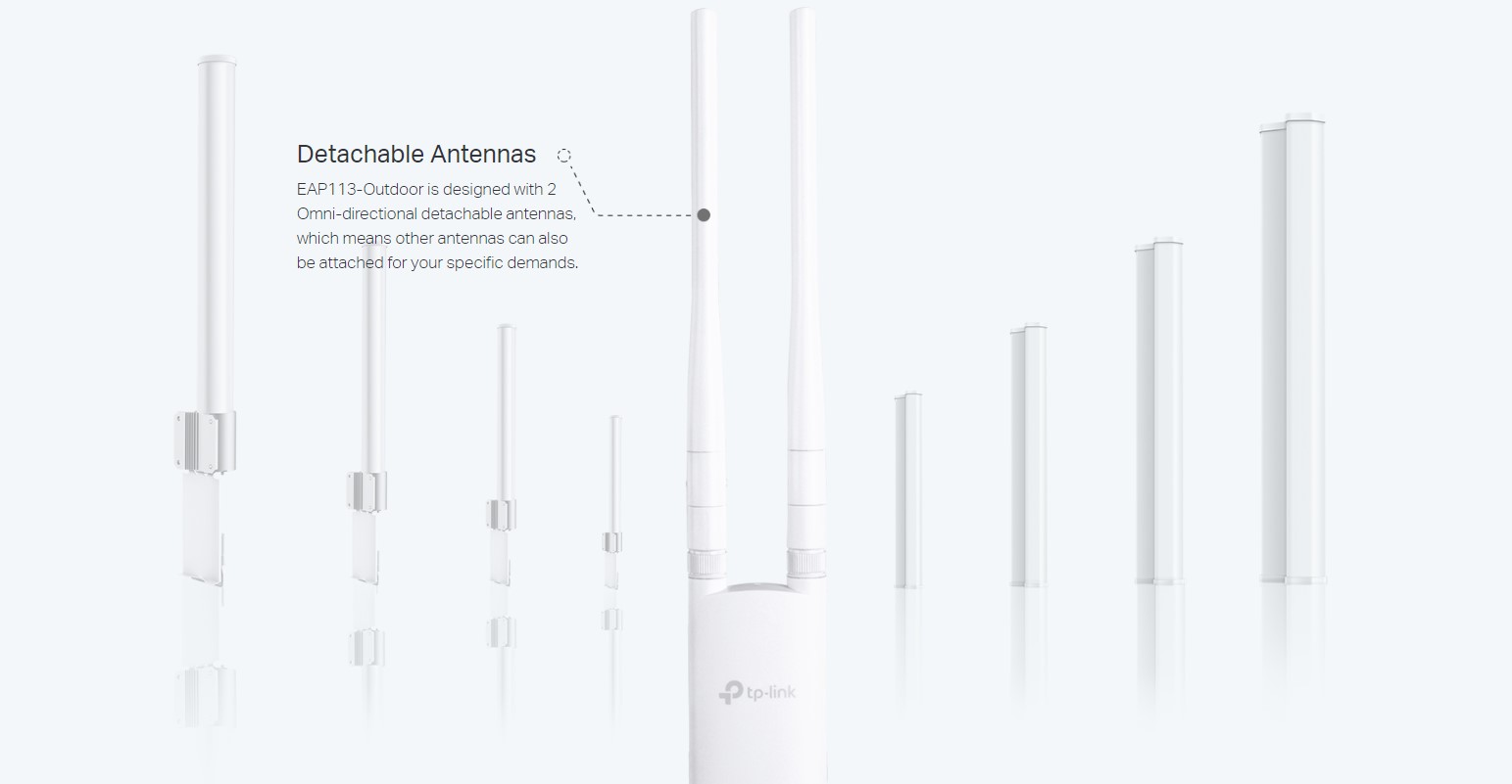 EAP113-Outdoor е проектиран с 2 многопосочни подвижни антени, което означава, че други антени също могат да бъдат прикрепени за вашите специфични изисквания.