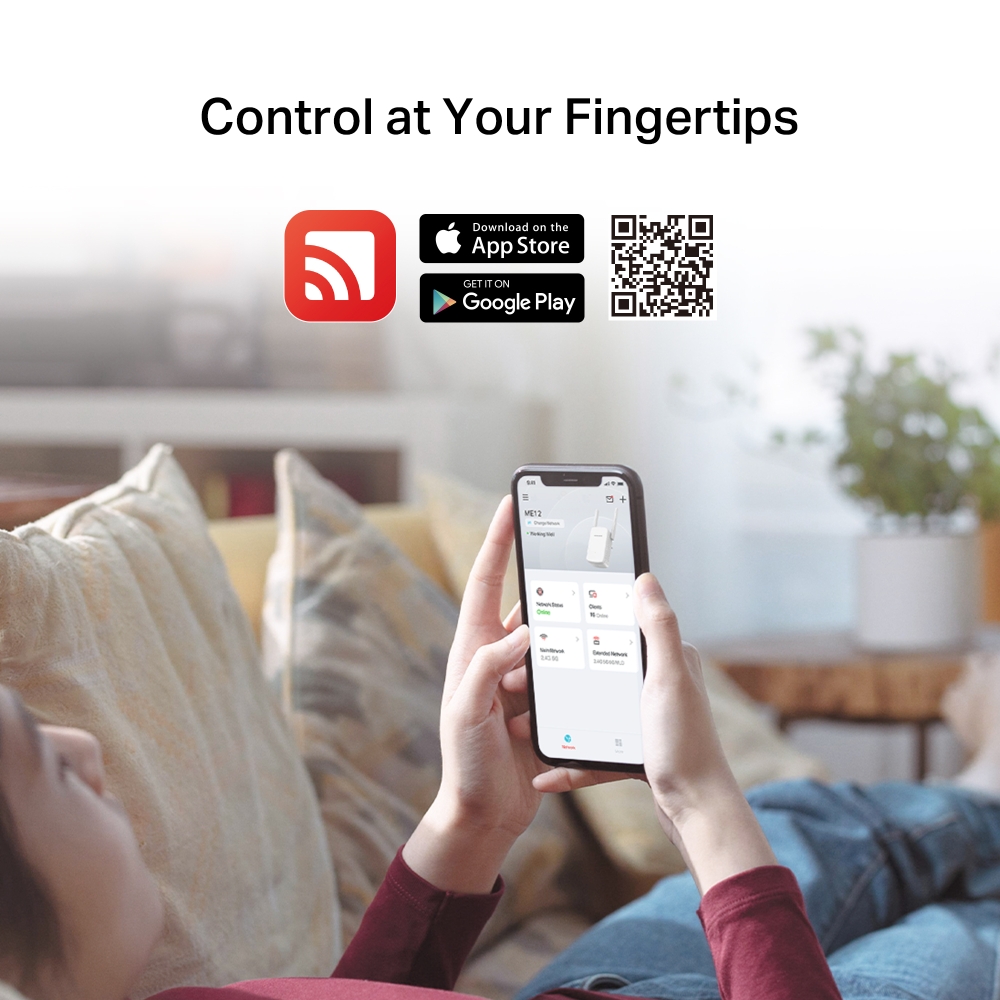 Стенният разширител на обхват ME12 увеличава покритието и укрепва сигнала на вашата съществуваща мрежа. Със скорости до 300 Mbps, той поддържа плавни онлайн игри, изтегляне на големи файлове и стрийминг навсякъде у дома.
