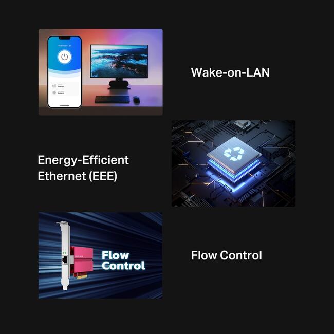 | Стандарти | 802.3x Flow Control 802.3az Power Saving 802.3i 10BASE-T 802.3u 100BASE-T 802.3ab 1000BASE-T 802.3bz 2.5GBASE-T and 5GBASE-T 802.3an 10GBASE-T |
