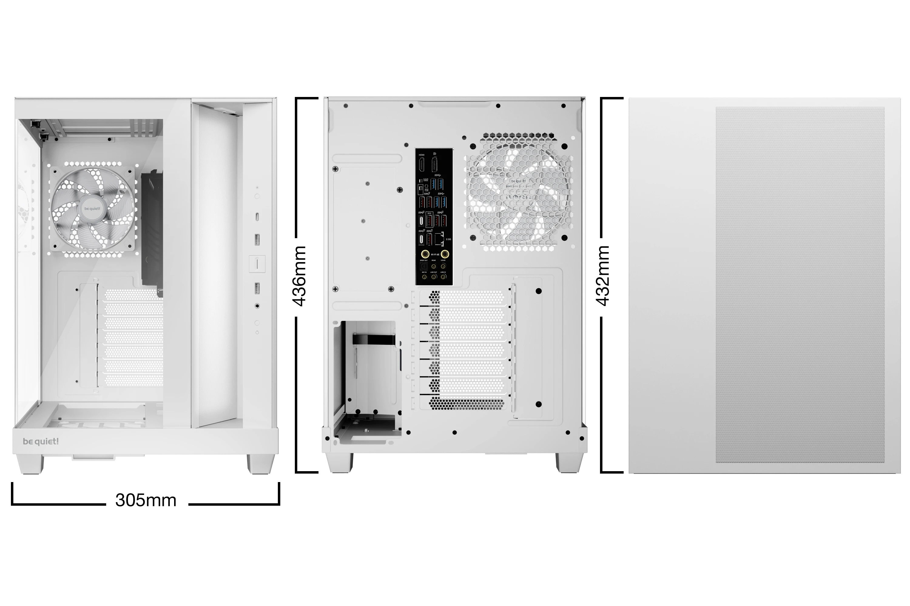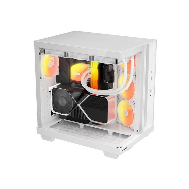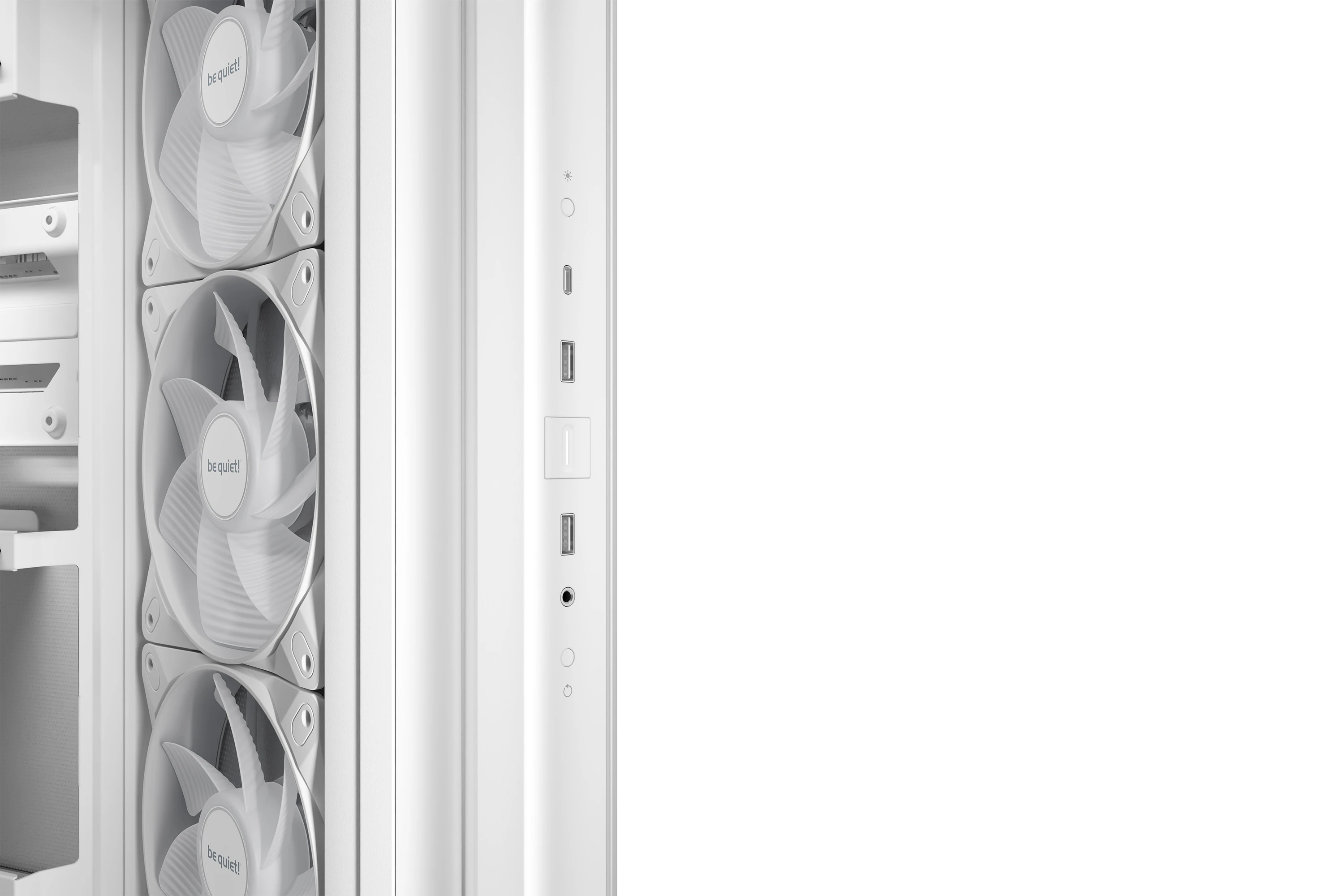 | ДОПЪЛНИТЕЛНИ | Angled slide-out fan frame on the side routes air directly to the GPU Fans can be installed in the lowered fan bay to line up perfectly with the case floor 4 preinstalled Light Wings LX 120mm PWM fans for extraordinary airflow and impressive illumination ARGB controller button and ARGB fan hub Spacious design for radiators up to 360mm, and ATX motherboards 2 possible PSU positions enable backside connector motherboards Dust filters in the side and the bottom |
