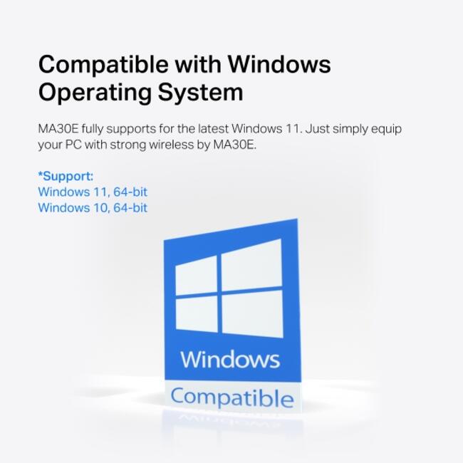 MA30E напълно поддържа най-новата версия на Windows 11. Просто оборудвайте вашия компютър със силна безжична връзка с MA30E.