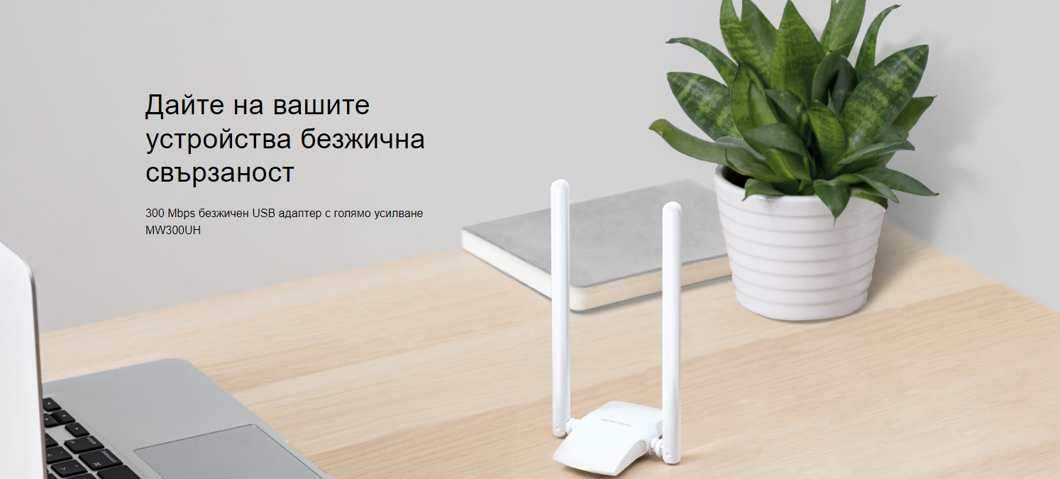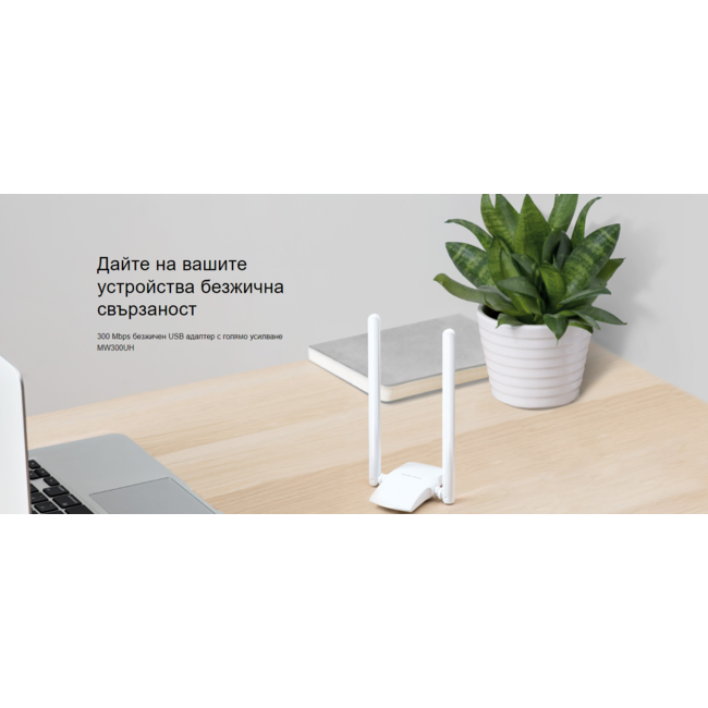 Безжичен USB адаптер Mercusys MW300UH 300 Mbps с голямо усилване