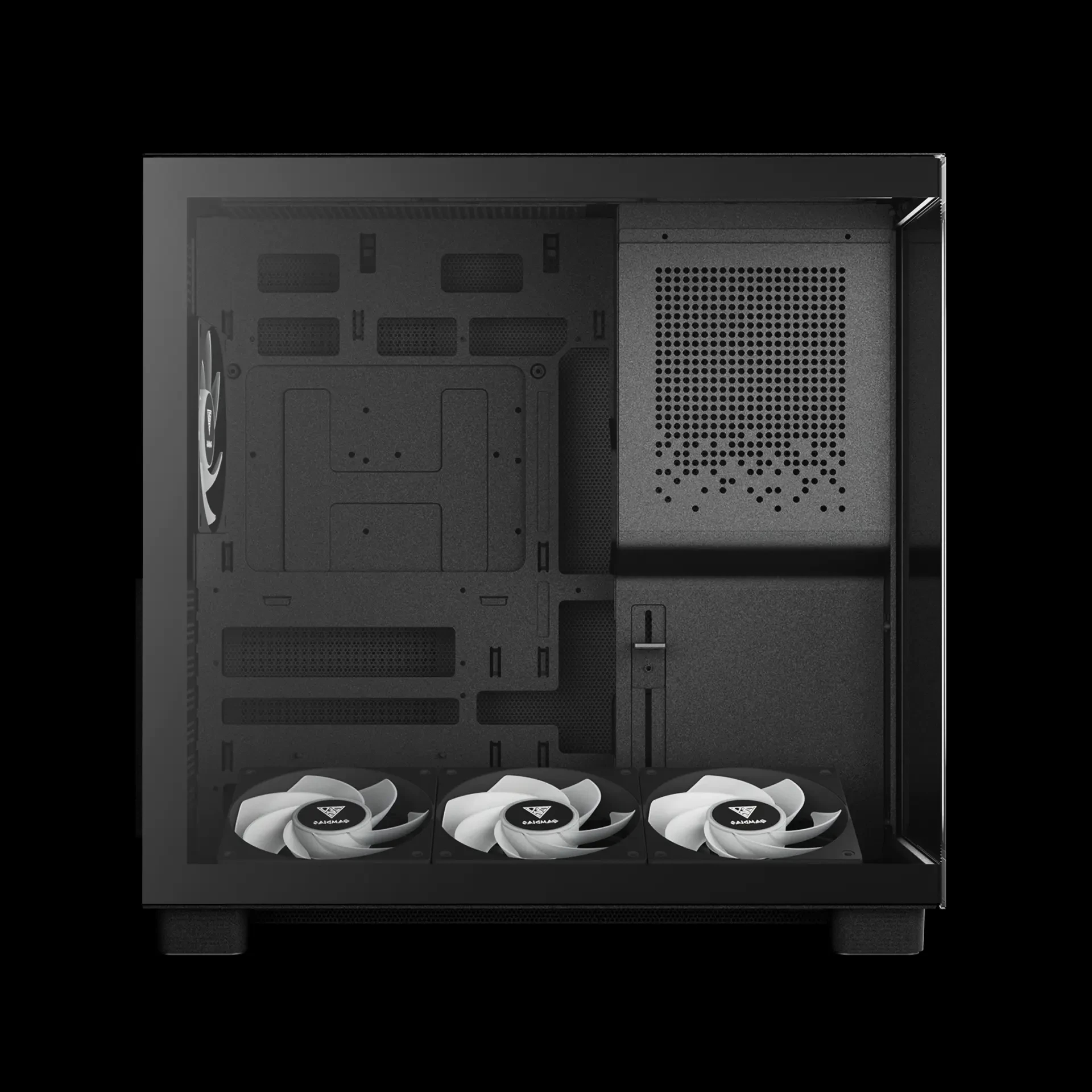 | ДОПЪЛНИТЕЛНИ | 4 Built-in 120mm NOTUS M1 ARGB Fans Natural Chimney-Style Ventilation Adjustable Bottom Cooling System Supports Connector-hidden Motherboards Seamless Tempered Glass Display Pre-installed Control BOX 8 Ports Hub (4 port are used) |
