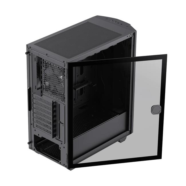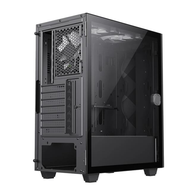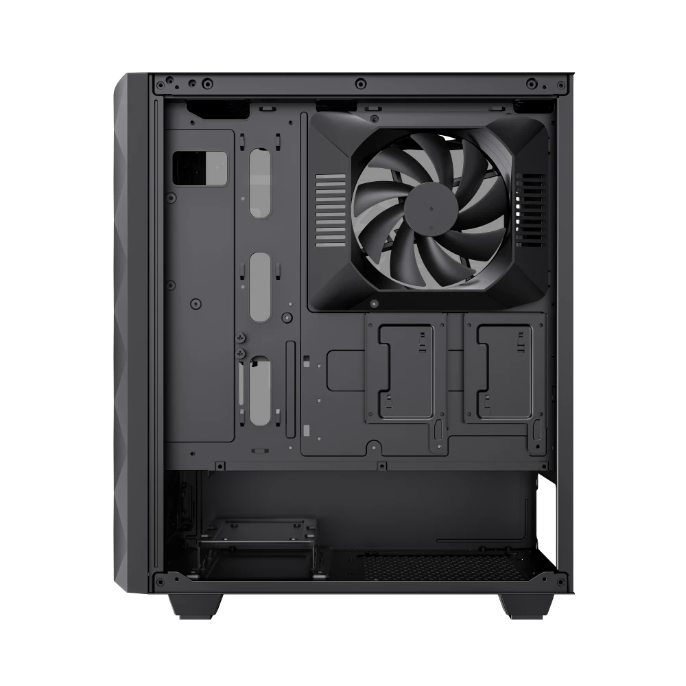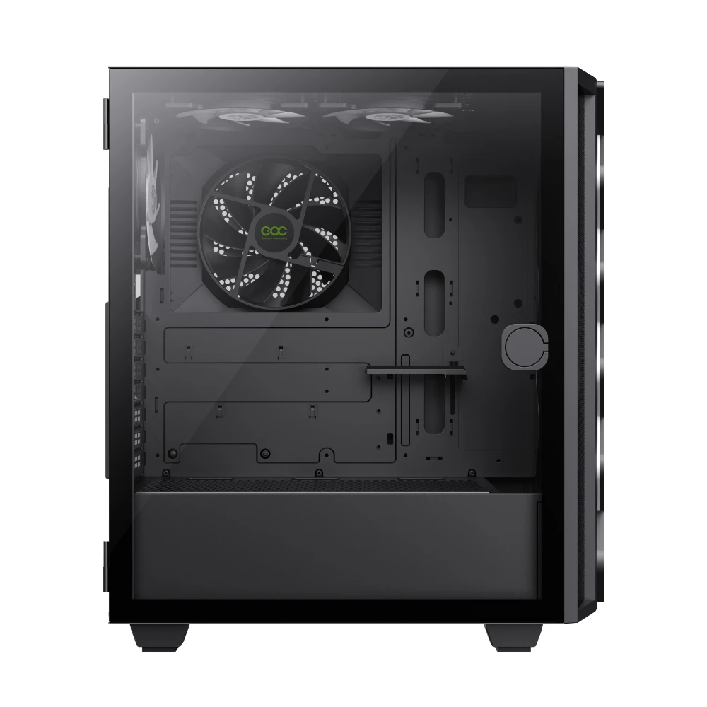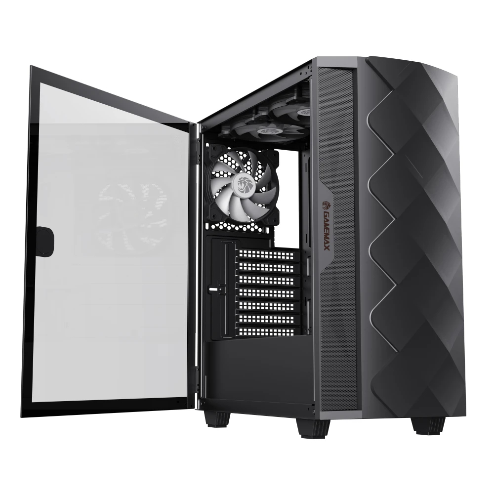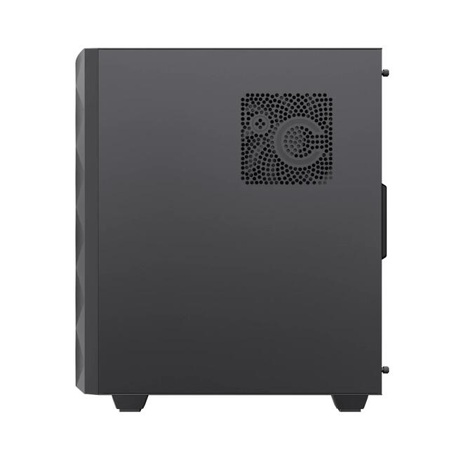 | ДОПЪЛНИТЕЛНИ | Sliding Door Design: Easy open/close Premium Aesthetic: Diamond-cut effect and inlaid spectrum LED strip for stylish RGB lighting COC Cooling: Active Turbo Fan with T-Shaped Air Intake ensures direct motherboard cooling and better heat dissipation Fan and RGB Support: Supports up to 5 fans with a 3-pin ARGB header for easy control via built-in firmware |